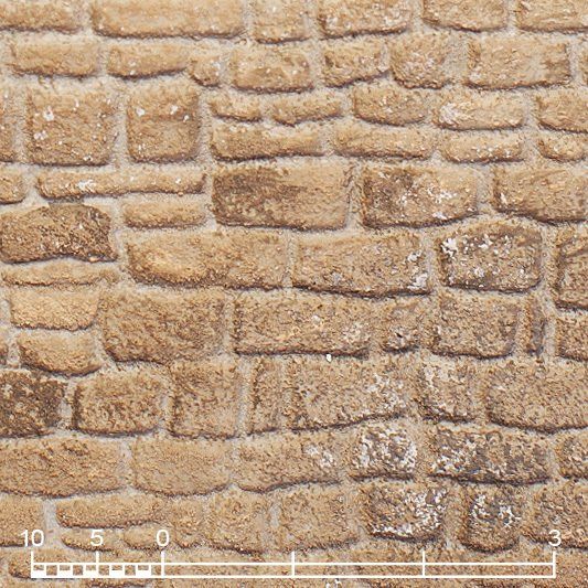 Flexible dreidimensionale Texturen für die Modellbauarchitektur basieren auf Polymermaterial sowie Cellulose und sind im Maßstab 1/45 erhältlich. Sie können sie mit einer Schere ausschneiden und auf verschiedene auch gebogene Oberflächen kleben. Verwenden Sie je nach dem zu beklebenden Material einen geeigneten Klebstoff.